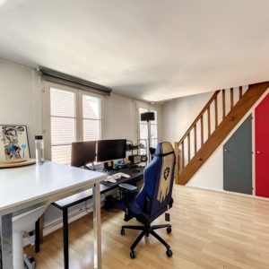 Description :Cet appartement offre un cadre de vie exceptionnel, alliant le charme de l’ancien et le confort moderne. Au premier niveau, vous trouverez un espace de vie convivial comprenant un séjour avec des rangements et un coin cuisine. L’étage supérieur accueille une chambre spacieuse offrant une vue sur les toits de la ville. Et une salle de bain avec un wc indépendant. En annexe, une cave complète ce bien.