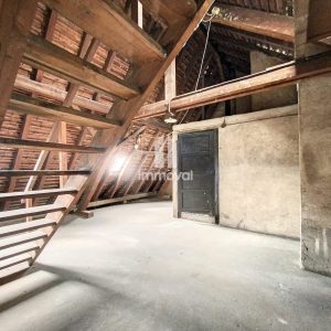 Il se compose d’un local commercial en rez-de-chaussée et de 4 appartements de type 3/4pièces du 1er au 4ème étage ; grenier et combles au dernier. Actuellement 3 lots sont vacants, local et 1er étage loués pour un loyer annuel de 26 000 €.