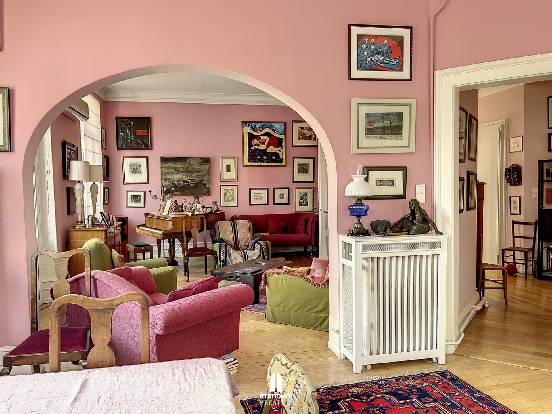 Prestations haut de gamme, parquet en chêne, cachet de l’ancien avec moulures et belles hauteurs sous plafond.