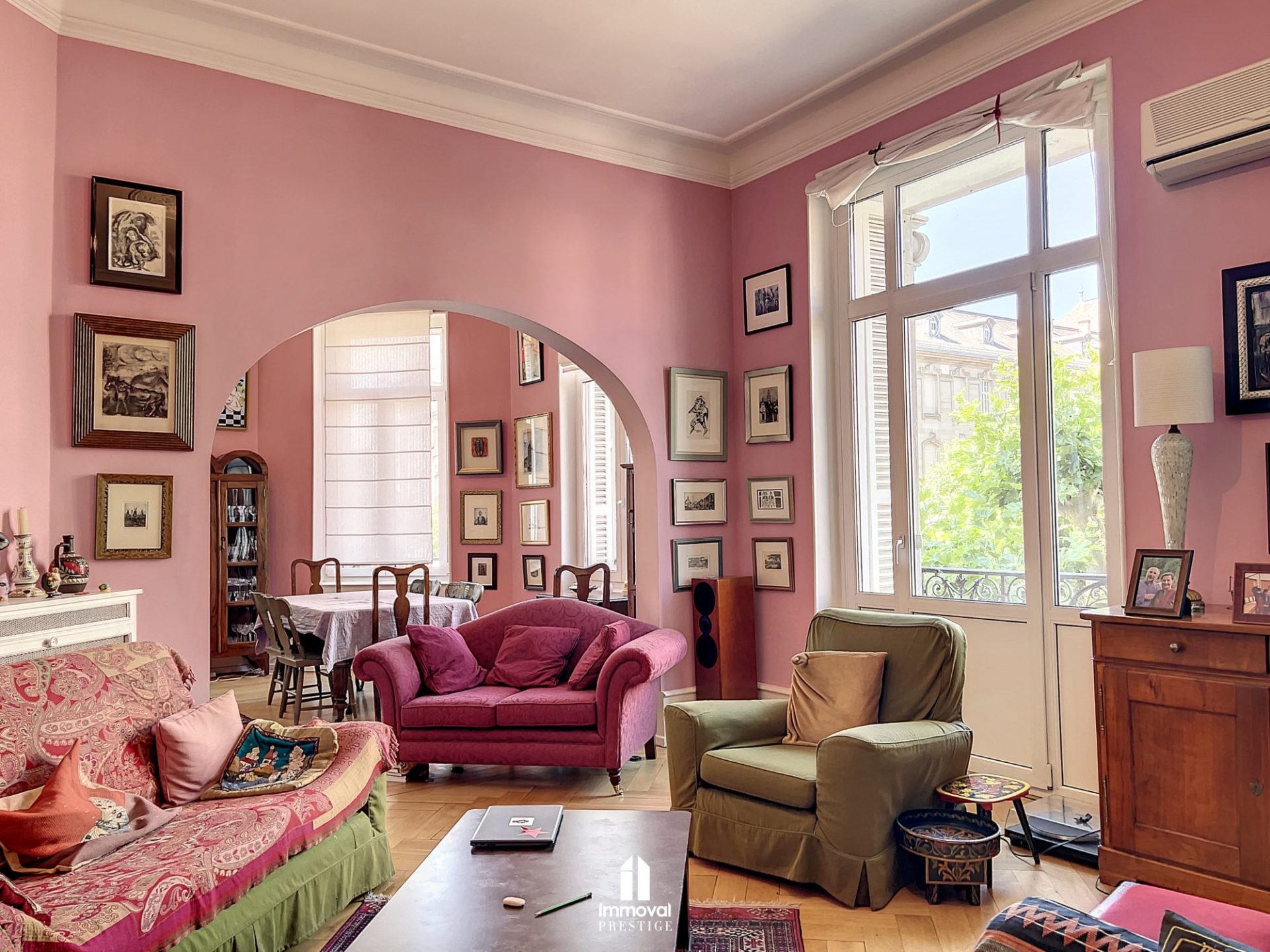 Rare, au coeur des Contades, au 1er étage d’un immeuble bourgeois, magnifique appartement de 221m2 agrémenté d’une terrasse sur cour de 21m2, un studio de 19m2 et un garage fermé.