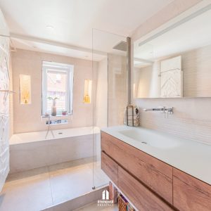 Au coeur de la Neustadt, au 5ème étage d’un immeuble en pierres de taille, beau duplex de 137m2 (178m2 au sol) entièrement rénové, avec ascenseur privatif. Cet appartement se compose au 1er niveau d’une entrée directe avec son ascenseur privatif, un grand séjour de 44m2, une cuisine aménagée avec un coin buanderie, une chambre parentale avec son dressing, sa salle de bains et un Wc indépendant.