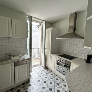 Il se compose d’une entrée , salon, cuisine indépendante aménagée et équipée, deux chambres, un bureau, une salle de bains, 2 WC et 3 balcons.