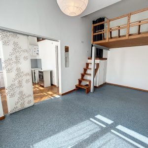 Boulevard de Nancy, libre d’occupation, F1 de 28.84m2 (34.02m2 au sol) en rez-de-chaussée surélevé en bon état comprenant :