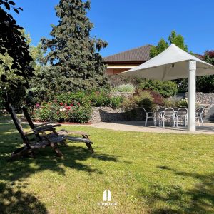 Vendenheim, emplacement recherché, belle villa entièrement rénovée en 2020 de 276m2, sur une parcelle paysagée de 14 ares, une grande terrasse de 54m2, 3 garages, et parking.